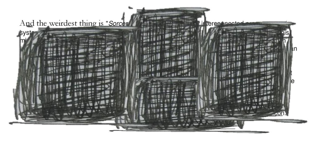 What I’m curious about is whether Jace actually wrote out a chunk of text first then decided later that it didn’t work and blocked it over, or he wrote it with the specific intention of covering it up?