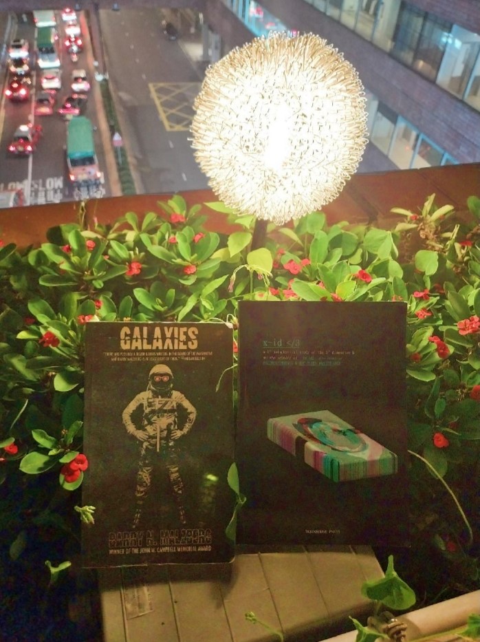 The other book, Galaxies, is one I scraped against in KRV, but now I’m back to give it another chance cos it is sci-fi pretending to be literature pretending to be sci-fi and I should like that kind of thing.