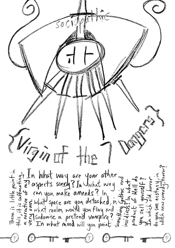 Doesn’t matter, I’ve forgotten all the stories and that piece, so I’ll do this one fresh, with little sketches in front of each story and maybe some extracts from ‘Purple Muon Castle’, which is the closest thing to Gothic that I’ve written.