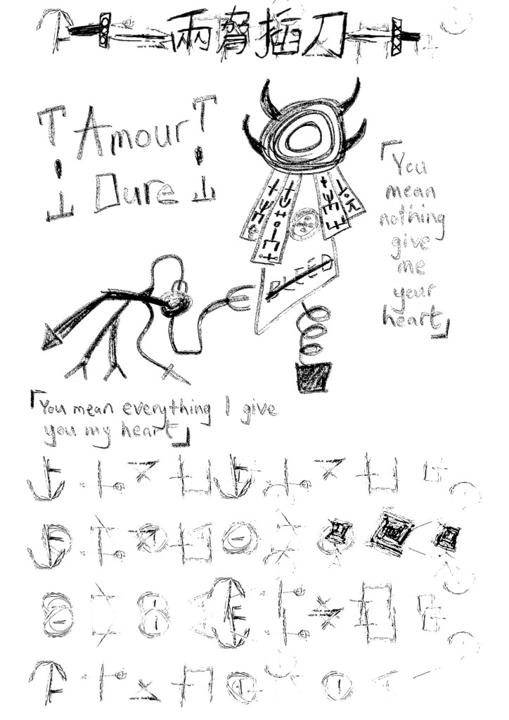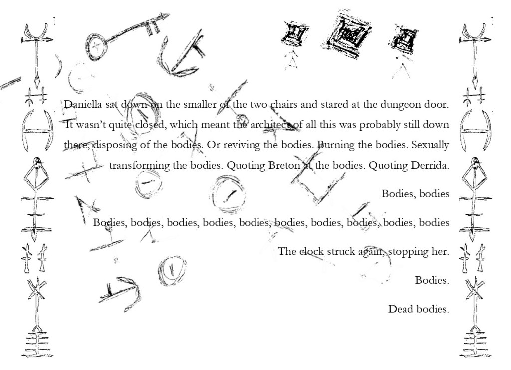 [I may have fucked up a bit here as I wrote down only the beginning of some of the extracted lines in my notebook, and I’ve already taken 7 Daggers back to the library. We’ll just have to imagine what I go on to talk about, I suppose. Assuming it isn’t the full quote. It might be sometimes, I’m really not sure. Sorry.]