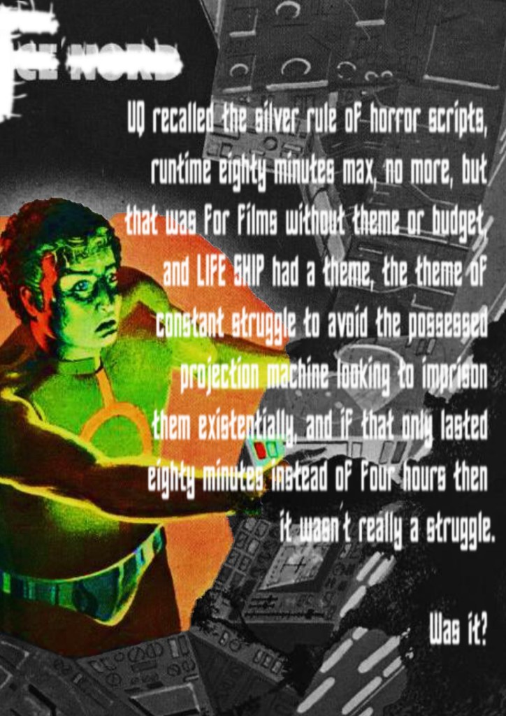 ‘I added another forty-seven pages,’ said UQ quietly, as Roboticist 4 picked up the nearest stool. ‘And changed the title to ‘Endless Death Ship.’
