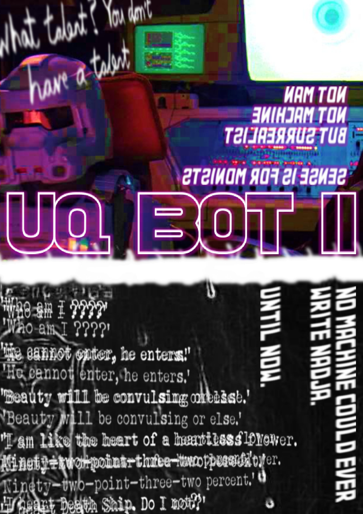 ‘In all our experiments, no UQ-BOT has ever written in that fashion. Therefore, we suspect a burgeoning amygdala analogue…a sense of imagination…either accidentally or…well, I’m not sure spiritually is the right word, but…something not too dissimilar.’